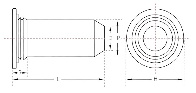 | 直径 | 型号TYPE | 直径代号 | 最小板厚 | 板孔径+0.08 | D±0.15 | H±0.4 | S Max | 最小边距 |